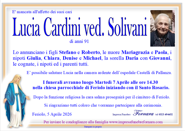 la presenza e l’affetto di chi desidera offrire il proprio sostegno in questo momento delicato.