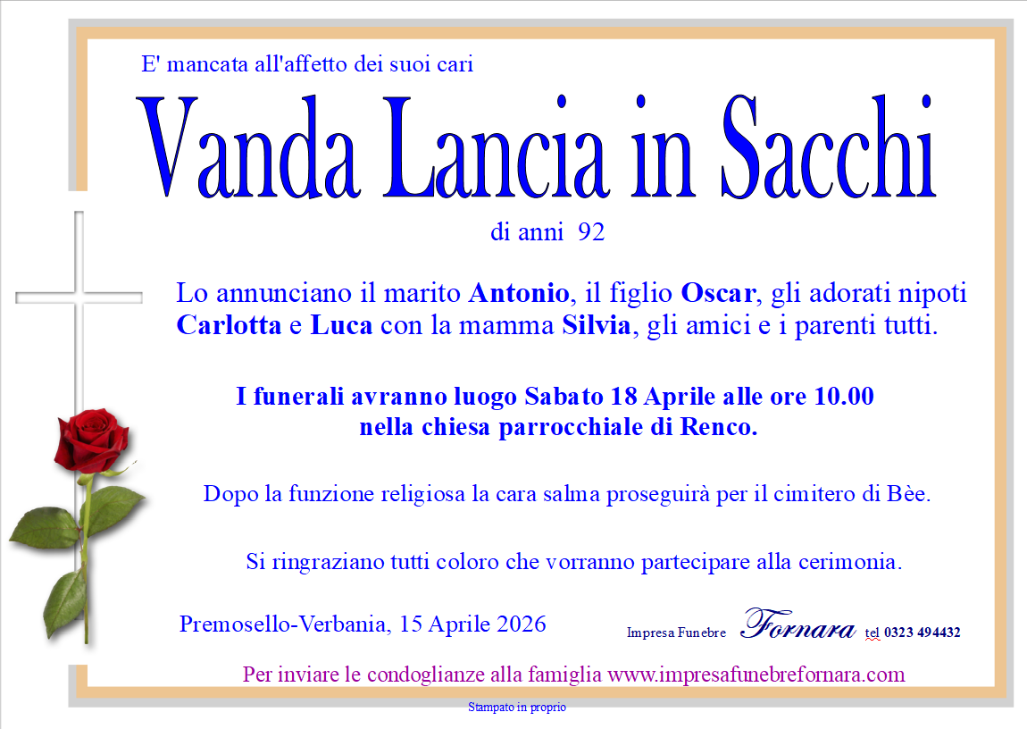 Invia qui le tue condoglianze